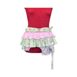 This playful garment was created from a combination of reclaimed textiles in soft pastel tones. Multiple layered ruffles made from floral prints, vintage fabrics and colorful patterns form a lively patchwork composition.